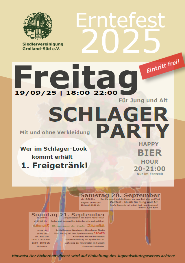 Ankündigungen · 04. September 2025 Schlagerparty am Freitag,19.09.2025 Kommt vorbei... Wir starten den Freitag mit unserer Schlager-Party. Wir freuen uns auf euch! tagPlaceholderTags: