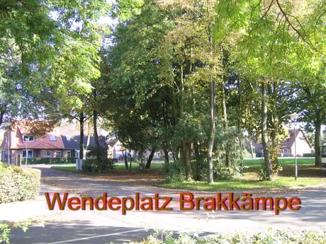 Der Wendeplatz am Ende der Brakkämpe. Schauplatz der Erntefeste. Von hier zweigen ab die Ostfriesische Straße und die Altländer Straße. Am Ende des Wendeplatzes in der äußersten rechten Ecke befindet sich ein Aufgang zum Sommerdeich mit Überwegung in die Schwäbisch-Hall-Siedlung. Die am Wendeplatz wohnenden